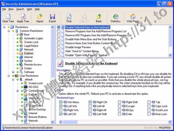 能鍵、上下文功能表、DOS窗口、編輯註冊表、Internet 和網路訪問;隱藏桌面圖示、
