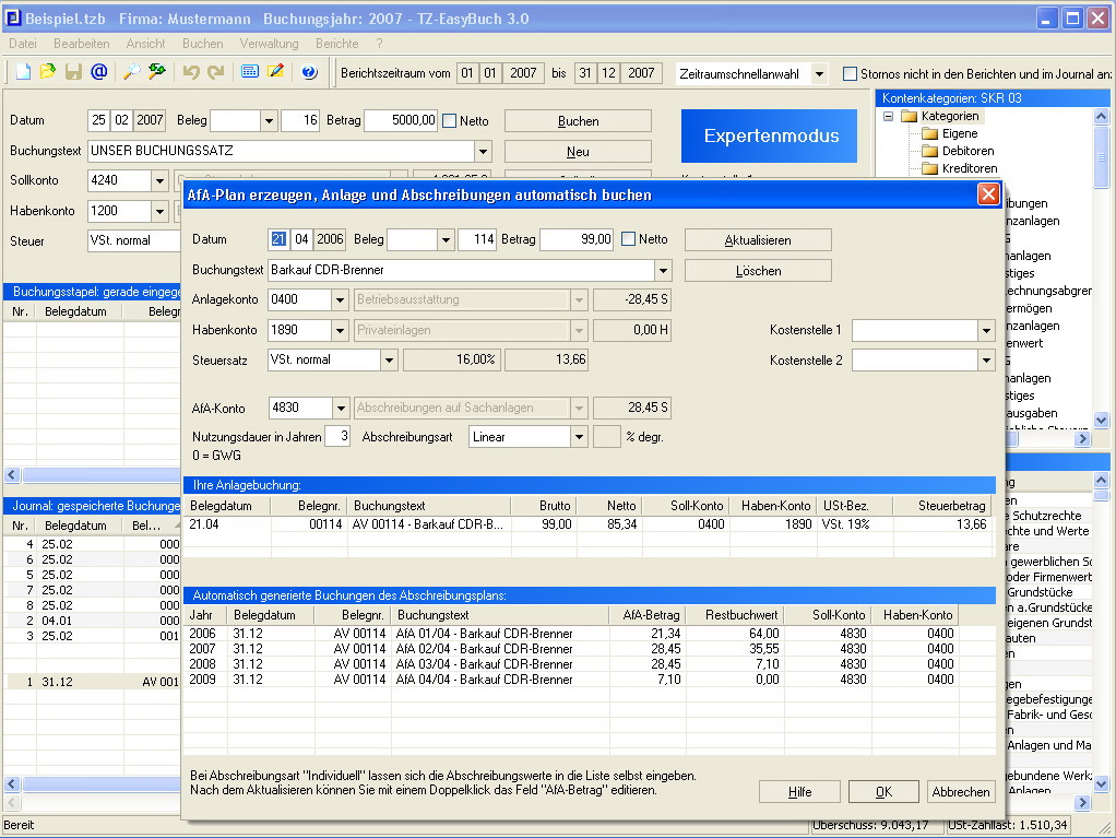 Mit dem Buchhaltungsprogramm TZ-EasyBuch erhalten Sie eine