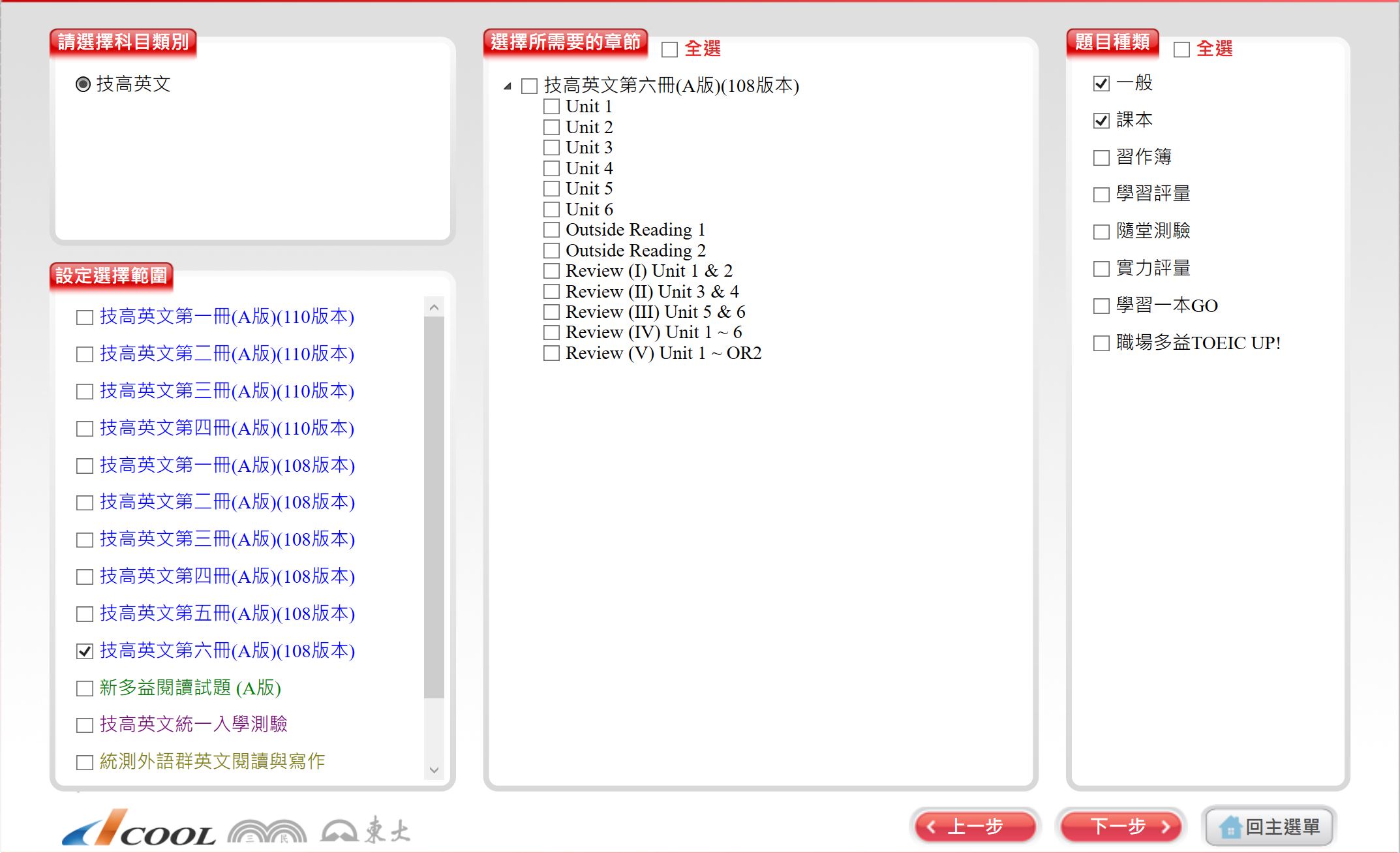 111學年下學期 技術高中命題光碟 三民東大版 英文科(A版 1-6冊)(108課綱) 題庫光碟