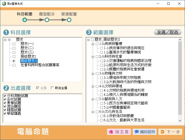 112學年上學期 高中命題光碟 南一版 歷史(一、二、三、選修I、選修II、跨科整合試題)(108課綱) 題庫光碟