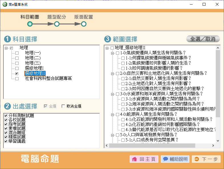 112學年上學期 高中命題光碟 南一版 地理(一、二、三、選修I、選修II、跨科整合試題)(108課綱) 題庫光碟