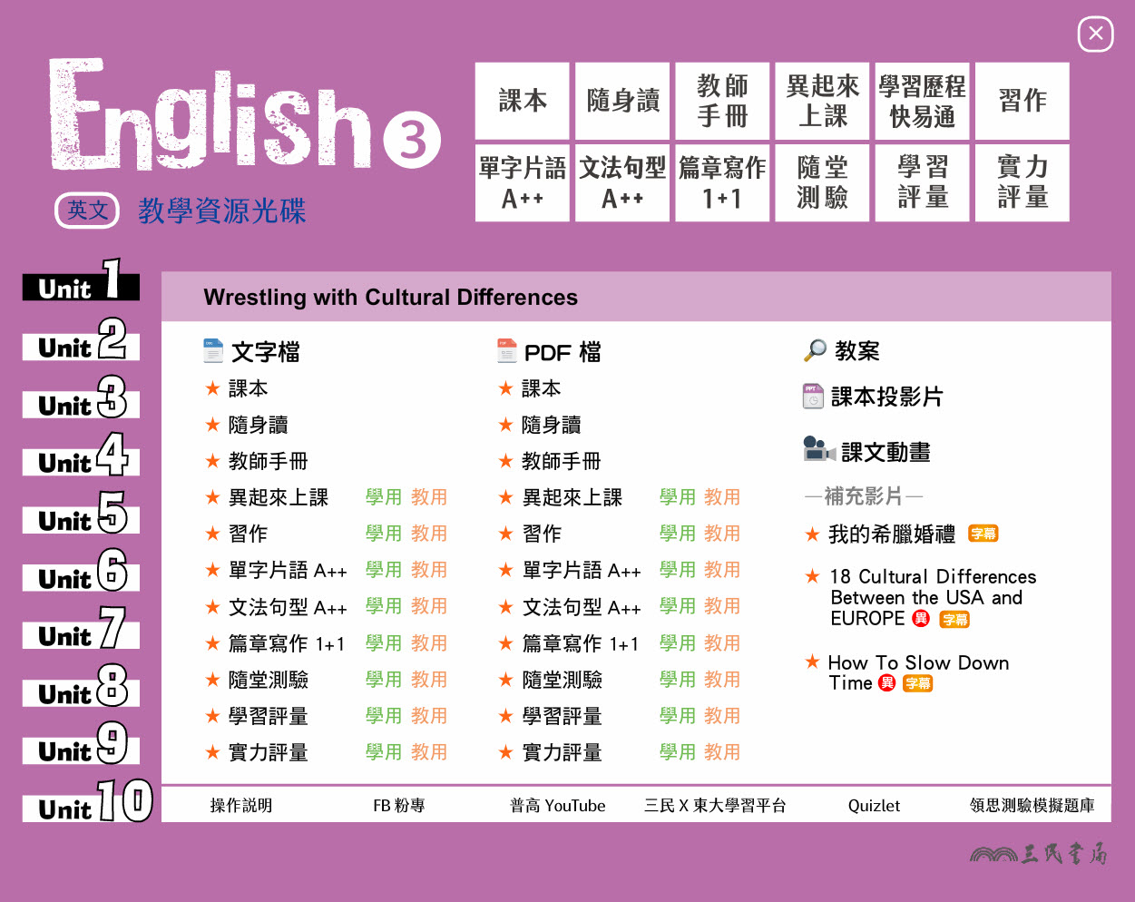112學年上學期 高中 三民版 英文科 2年級 教學光碟