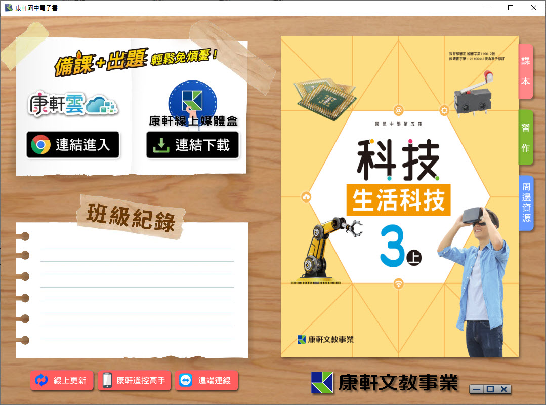 112學年上學期 國中 康軒版 生活科技電子書 3年級(含課本、習作含解答、教學資源)教學光碟