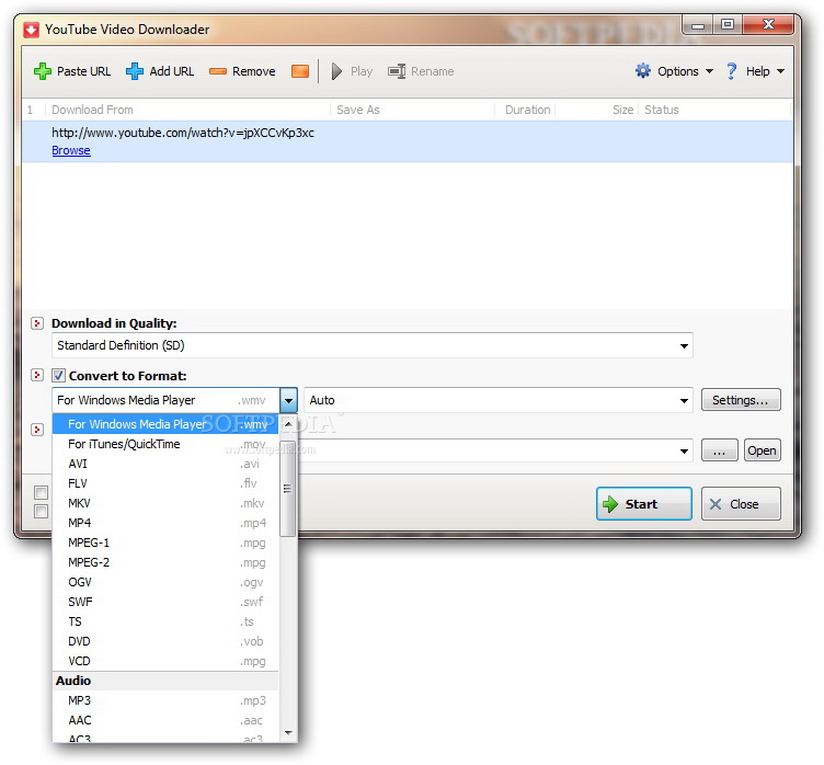 can save the YouTube video to different video formats, such as WMV,