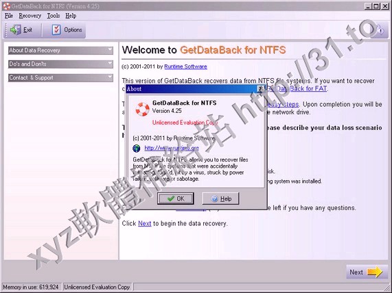 • Runtime GetDataBack for NTFS v3.69 英文正式版(恢複數據軟體)
