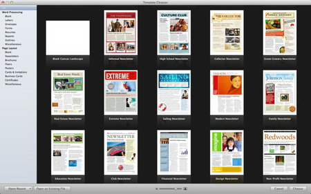 Pages starts with an enhanced Template Chooser that lets you skim