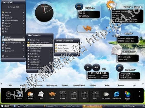 Winstep Xtreme  Winstep是一個經典的Windows界面風格替換工具,用來增強豐富你的桌面,