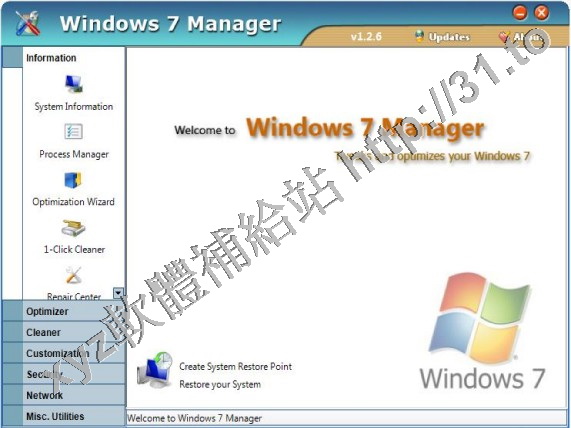 Yamicsoft Windows 7 Manager v3.0.8 英文正式版(Widnows7 總管是優化和設置軟體)